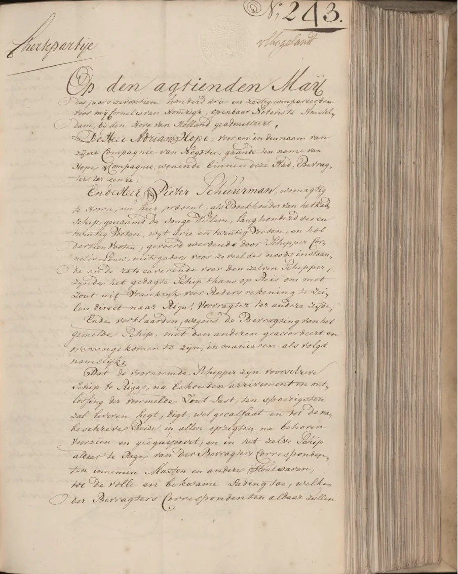 These meticulous handwritten charter-party documents are agreements between skippers and merchants to transport goods mostly around Europe, as well as to the West and East Indies. They contain a wealth of information on harbours, goods, spices, prices, and the period specific terms and conditions in these contracts. All these ‘data points’ partly hidden in the documents will be pulled to the surface by StoryTech enabling for further analysis and a captivating visualization.